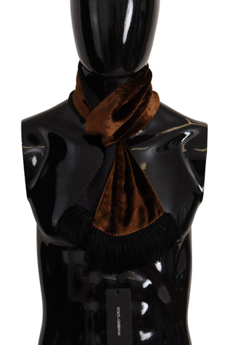 Dolce & Gabbana Brown Shawl Velvet Neck Wrap Fringe Viscose Scarf