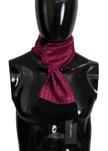 Dolce & Gabbana Magenta Geometric Patterned Shawl Fringe Silk Scarf