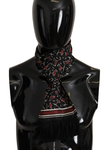 Dolce & Gabbana Black Red Umbrellas Patterned Shawl Fringe Scarf