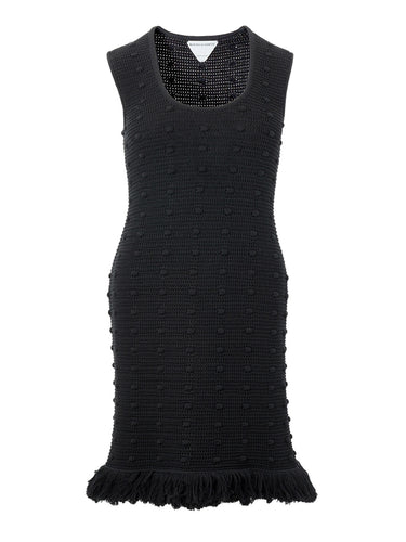 Bottega Veneta Elegant Black Knitted Pencil Dress with Fringes