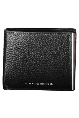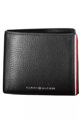 Tommy Hilfiger Sleek Black Leather Wallet with Contrasting Accents