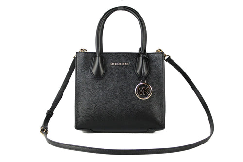 Michael Kors Mercer Medium Leather Messenger Crossbody Handbag (Black Solid)