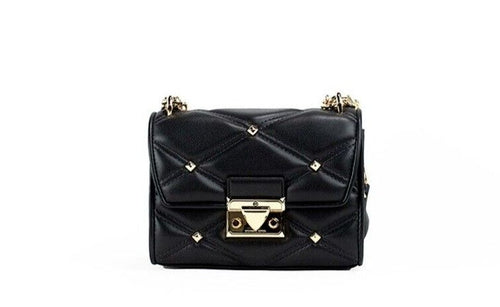 Michael Kors Serena Small Smooth Black Vegan Leather Studded Flap Crossbody Bag