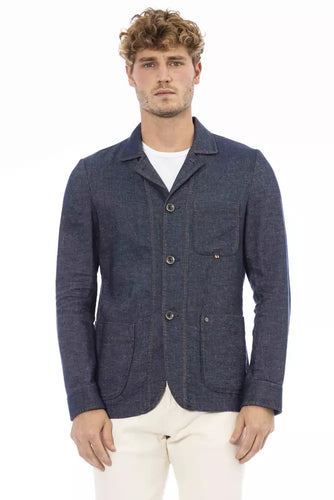 Distretto12 Elegant Cotton-Linen Blend Blue Jacket