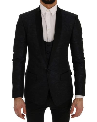 Dolce & Gabbana Elegant Blue & Black Slim Fit Suit Ensemble