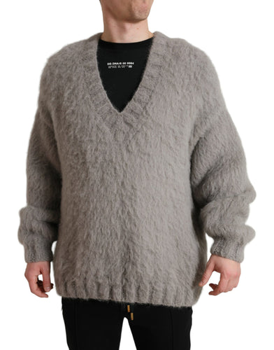 Dolce & Gabbana Gray Alpaca Fur V-neck Men Pullover Sweater