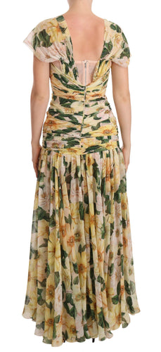Dolce & Gabbana Floral Elegance Silk Pleated Maxi Dress