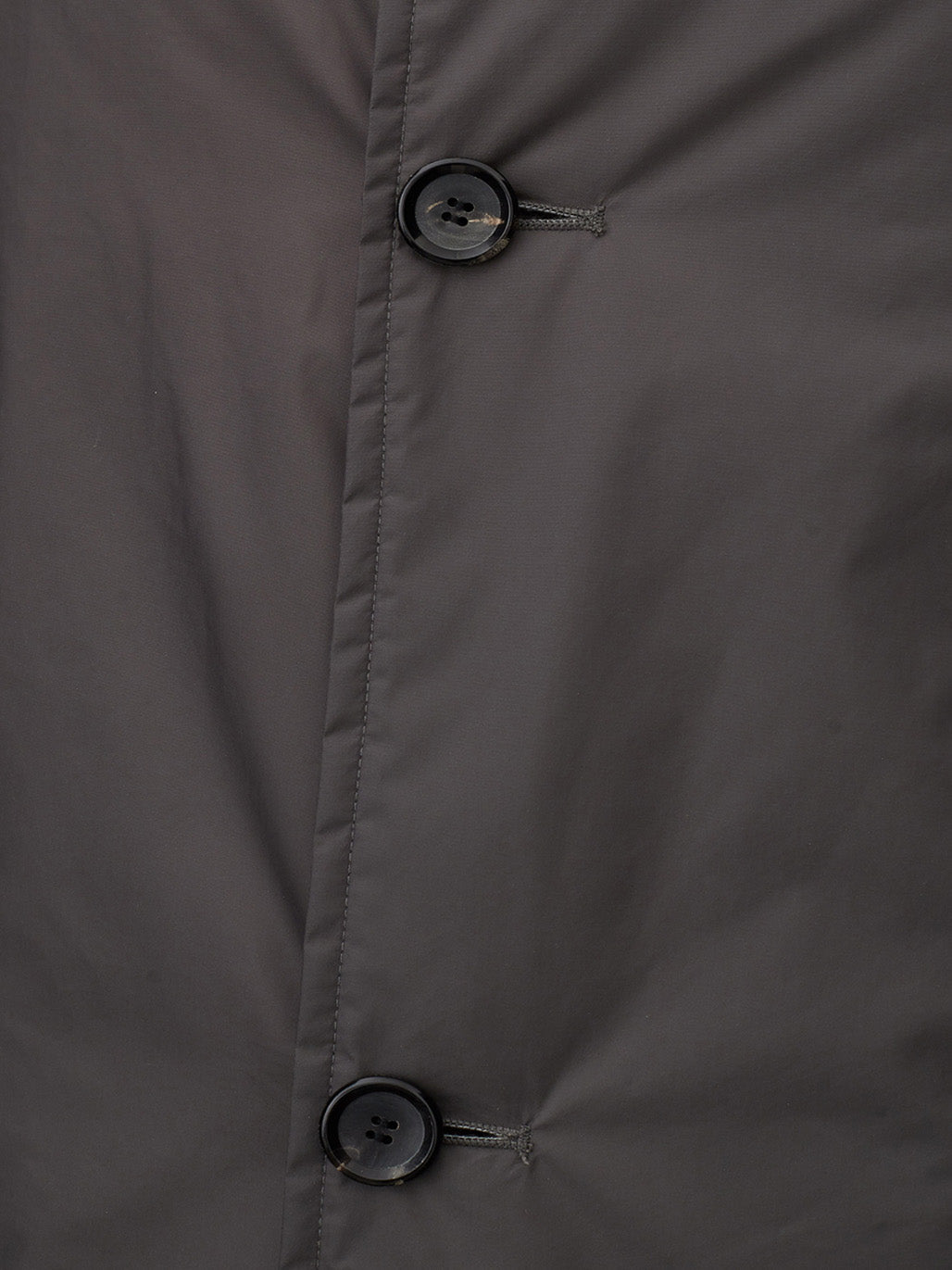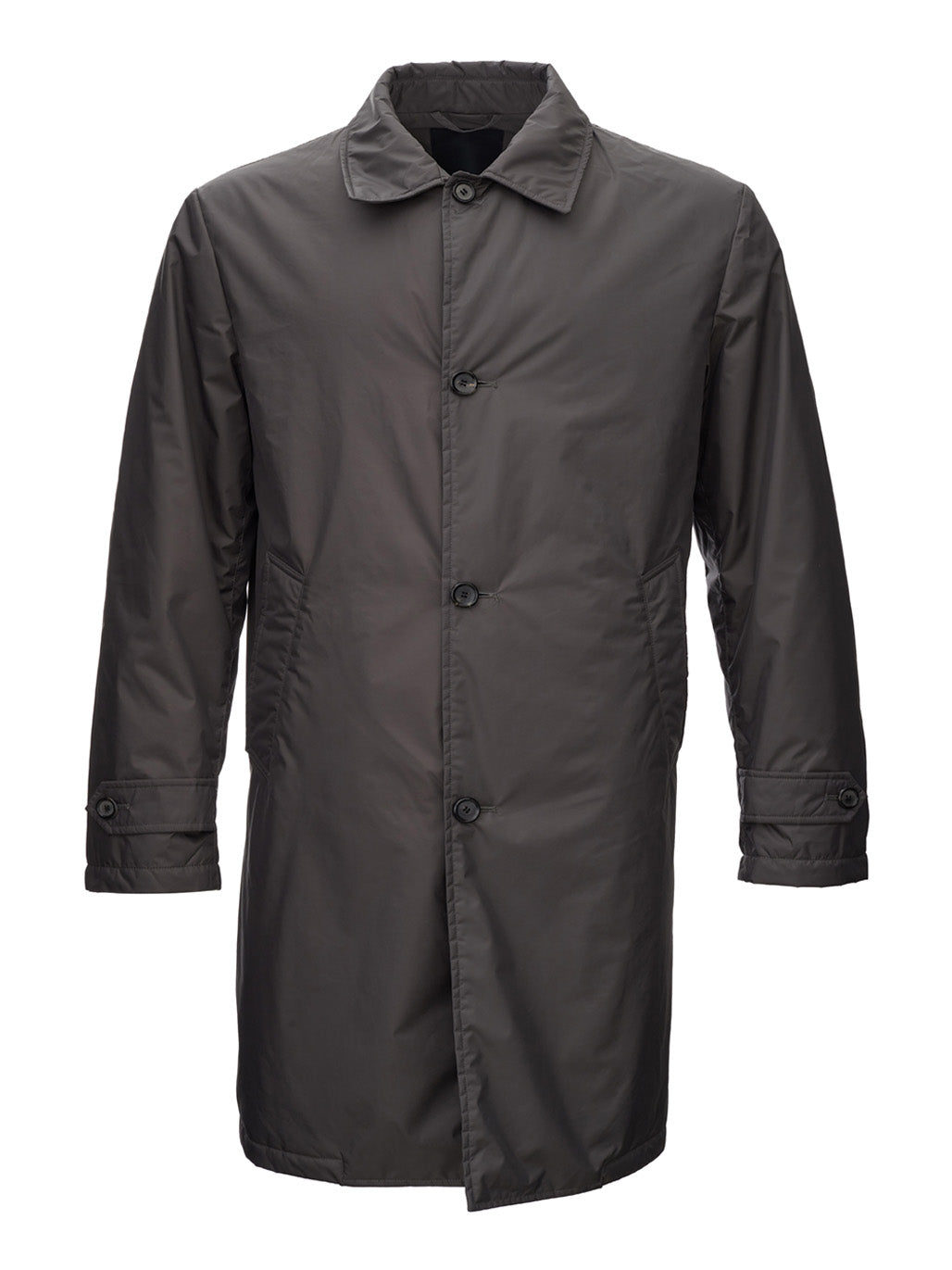 Gorgeous brand new with tags, 100% authentic ADD waterproof quilted mid-length trench in dark grey is the epitome of refined outerwear. With a sophisticated French collar and front button closure, this trench offers both style and practicality. The regular fit design and light quilting ensure comfort without compromising on elegance, and its waterproof fabric makes it ideal for any weather. Tailored to perfection in Italy, this trench is a luxurious addition to any wardrobe.