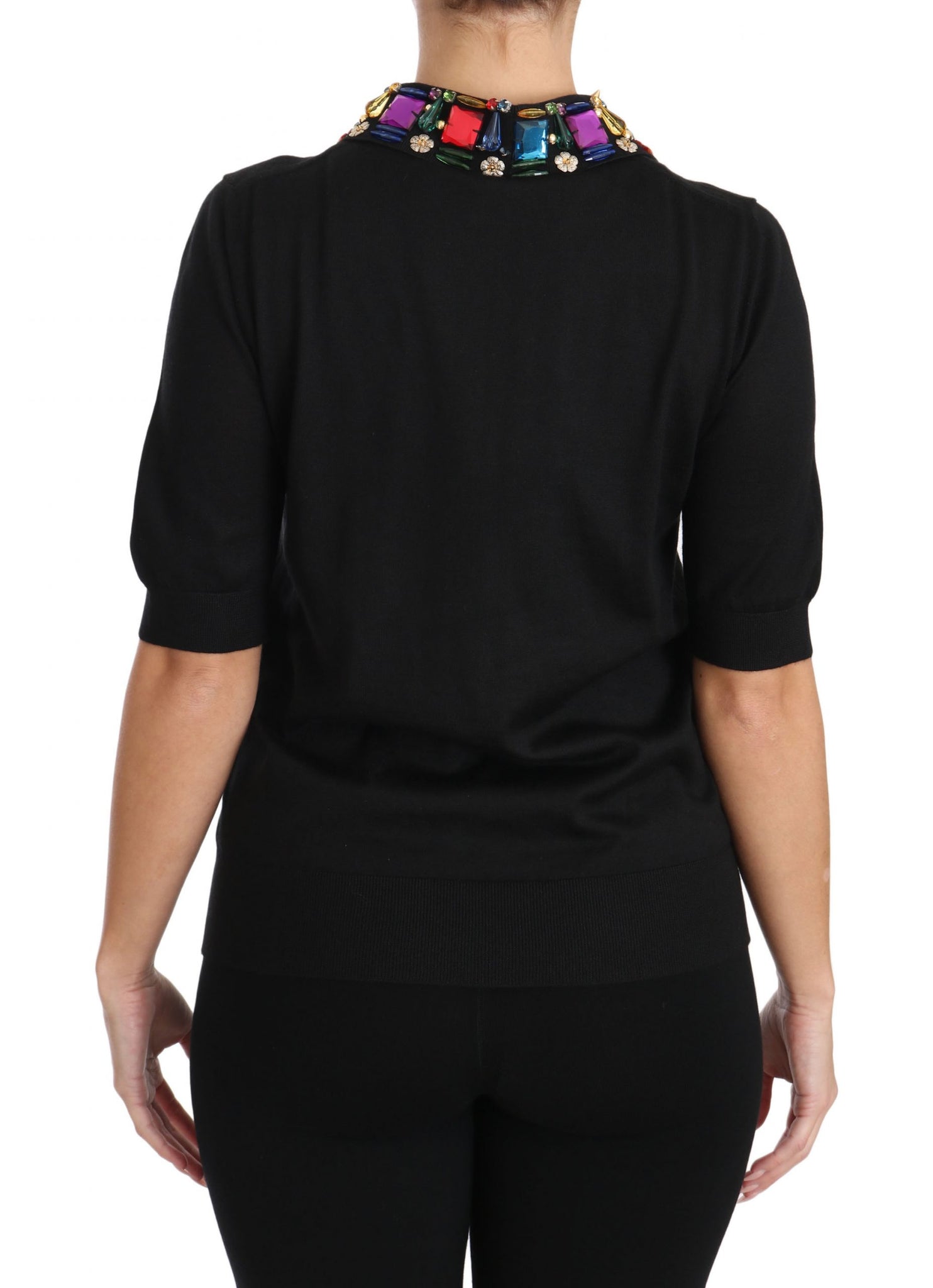Indulge in the epitome of Italian luxury with this exquisite Dolce & Gabbana black cashmere sequin collar top. Crafted from a sumptuous blend of cashmere and silk, this top is the perfect addition to your refined wardrobe, featuring stunning sequin embellishments for a touch of glamour. Its superb craftsmanship and attention to detail underscore the exclusive nature of this garment, making it a must-have for those who appreciate high fashion and sophistication.