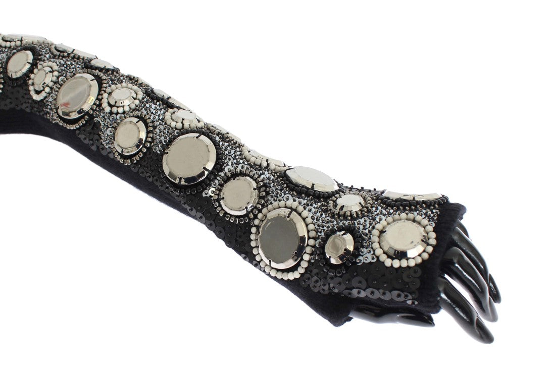 Envelop your hands in the luxury of these exquisite fingerless gloves from Dolce & Gabbana. Crafted from the softest cashmere blend and adorned with black and silver sequins, these gloves are the epitome of elegance. Perfect for adding a touch of glamour to any outfit, they are a testament to the brand’s commitment to high craftsmanship and rare, sought-after designs. Made in Italy, they promise to be a cherished addition to your accessories collection.