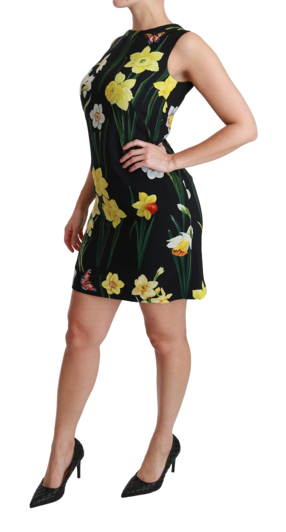 Elevate your wardrobe with this stunning Floral Sheath Mini Dress by Dolce & Gabbana. Gorgeous brand new with tags, this 100% Authentic dress is fashioned to make a statement. With its vibrant black hue adorned by a multicolor floral print, this piece is the epitome of Italian craftsmanship. Featuring a sleek zipper closure on the back and a luxurious silk stretch inner lining for ultimate comfort, this dress is perfect for any upscale event. Indulge in the exclusive and high craftsmanship of Dolce & Gabbana, right from the heart of Italy.
