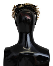 Experience the epitome of luxury with the Dolce & Gabbana crystal embellished diadem, a masterpiece that merges Italian craftsmanship with dazzling elegance. Adorned with an array of clear and gray crystals set upon a sumptuous silk blend, this black and gold headpiece is a testament to opulence and high fashion. Perfect for adding a touch of regal sophistication to your ensemble, this diadem is a brand new addition with tags, ensuring authentic allure and stunning style.