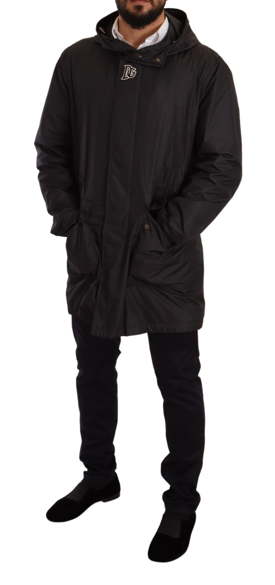Discover the epitome of sophistication with this stunning, 100% authentic Dolce & Gabbana hooded blouson coat. Perfect for the fashion-forward individual, this jacket boasts a sleek black color and a comfortable fit, complemented by a convenient zipper button closure and a pull waist strap for a customized fit. With its four practical front pockets and distinctive logo details, this piece is as functional as it is stylish. Crafted in Italy from superior quality polyester, it promises to elevate your outerwear collection.