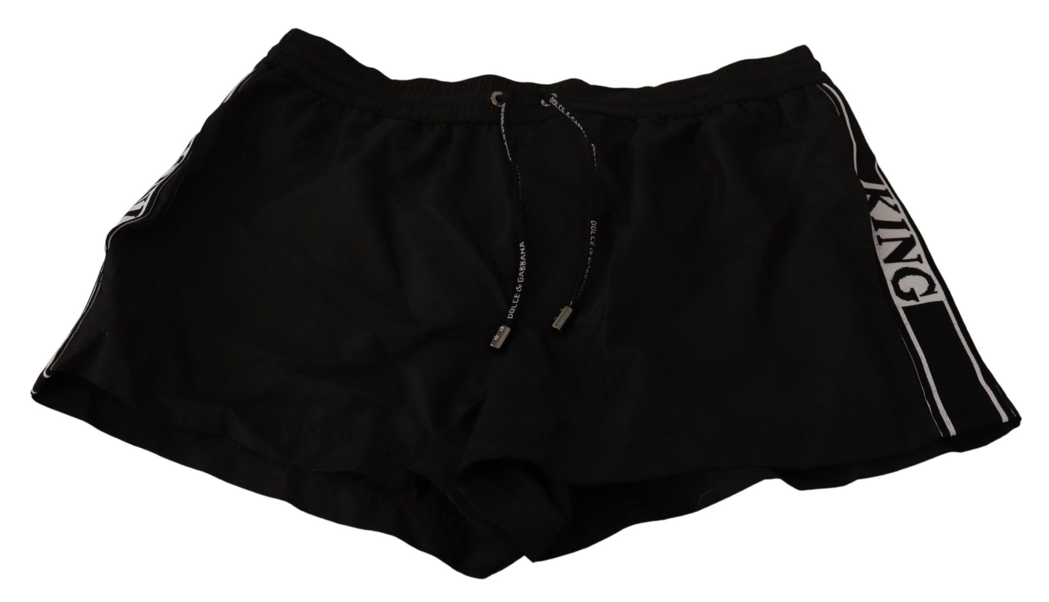 Step up your beachwear game with these luxurious Dolce & Gabbana swimming trunks, featuring a stylish KING motif. Perfect for those seeking exclusive, high-fashion swimwear with an edge of royalty. Great fitting and comfort, accompanied by handy pockets and an adjustable elastic waist strap, these trunks are a blend of style and practicality.
