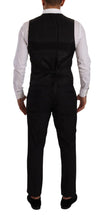 Step into the world of high fashion with this exquisite Dolce & Gabbana three-piece suit that exemplifies elegance and sophistication. Perfectly tailored to fit the modern man, this Martini-style ensemble consists of a skillfully deconstructed blazer featuring sleek notch lapels and a single-button closure, a classic waistcoat with a full-button front and an adjustable back strap, and crisp trousers equipped with a concealed zip and button closure. Adorned with front slanted pockets, a watch pocket, dual back welt pockets with buttons, and pressed pleats, this suit offers both flair and functionality. Crafted in Italy, the premium blend of virgin wool, silk, and polyester ensures a luxurious feel and unparalleled durability. Whether for a formal event or a significant business meeting, this slim-fit suit will make an unforgettable impression.