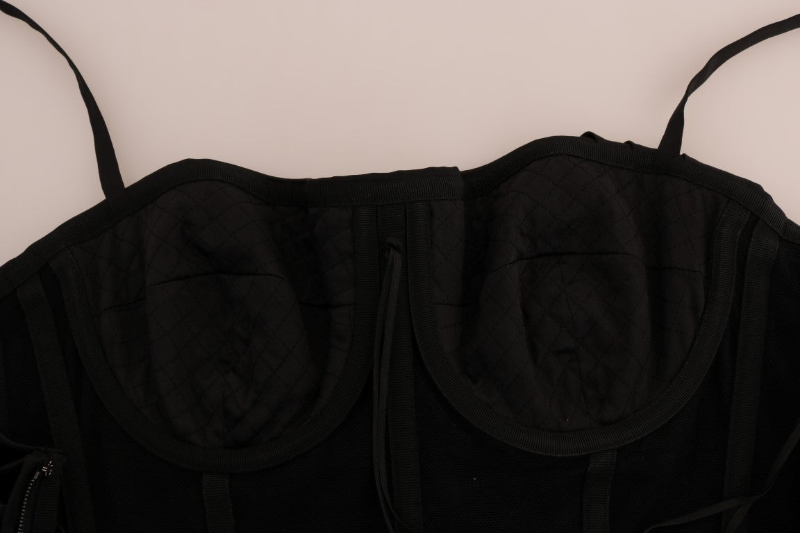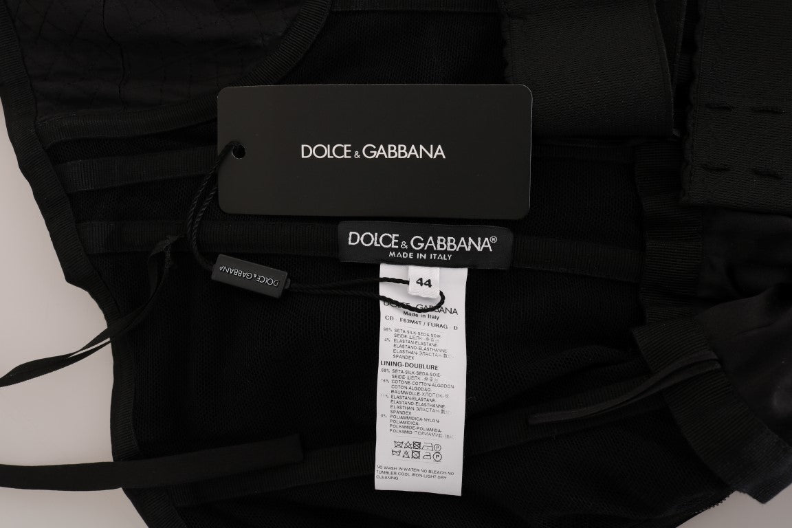 Indulge in the epitome of Italian luxury with this exquisite Dolce & Gabbana ruched silk stretch bustier midi dress. Perfect for your high-end collection, this garment features a flattering ruched design and a supportive inner bustier corset. Its elegant black hue and silk stretch inner lining ensure both style and comfort, making it a versatile piece for various upscale occasions. Experience the brand’s dedication to high craftsmanship with this made in Italy dress that echoes exclusivity.