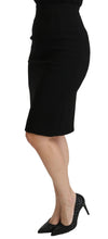 Embrace timeless elegance with this exquisite knee-length skirt by Dolce & Gabbana. Perfect for a sophisticated evening out or a polished professional look, this high-waisted skirt pairs flawlessly with both casual and formal tops. Crafted in Italy from luxurious 100% wool, this piece is a testament to classic style and fine craftsmanship. It features a sleek black color and subtle logo detailing, complete with a convenient zipper closure for a perfect fit.