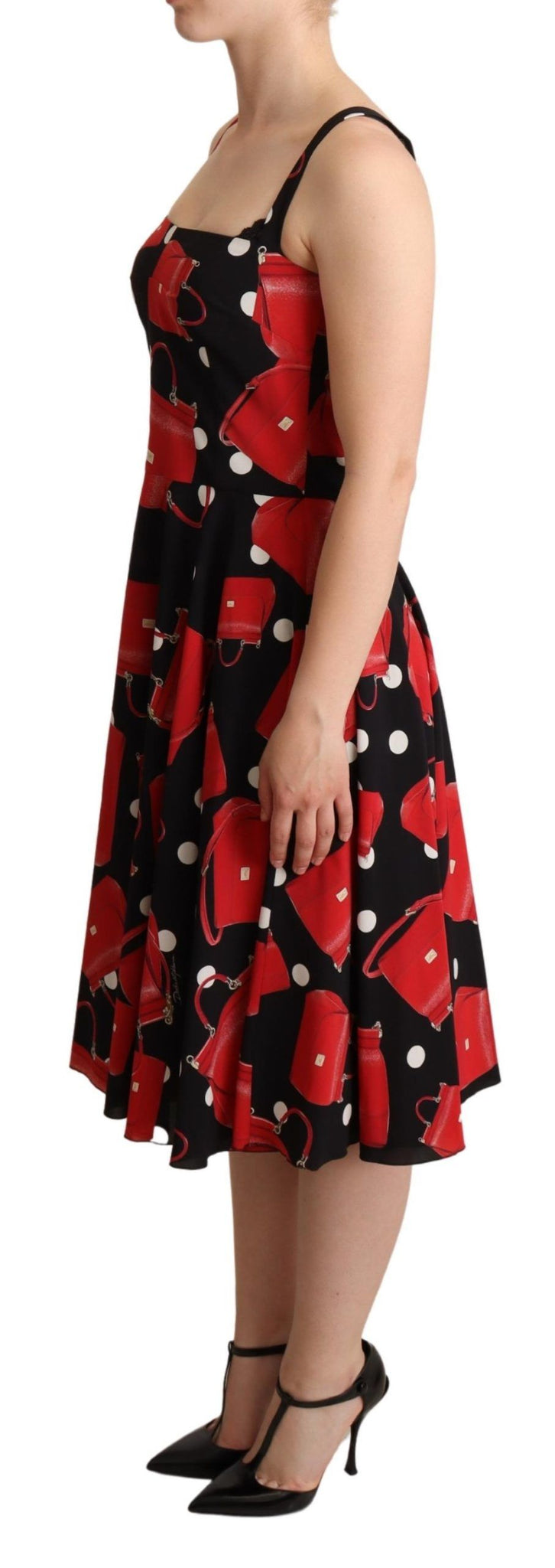 Indulge in the essence of sophistication with our stunning Sleeveless Midi Dress, a statement piece that exudes the exclusive and high craftsmanship of Dolce & Gabbana. This gorgeous dress flaunts an elegant A-line silhouette complemented by a Sicilian Bag print set against a classic black background, ensuring a mesmerizing presence at any event. The dress offers a comfortable fit with a silk stretch inner lining, seamless zipper closure on the back, and the trademark logo details as a mark of luxury and authenticity. Proudly made in Italy, this dress is not just a garment but a piece of art that embodies style and elegance.