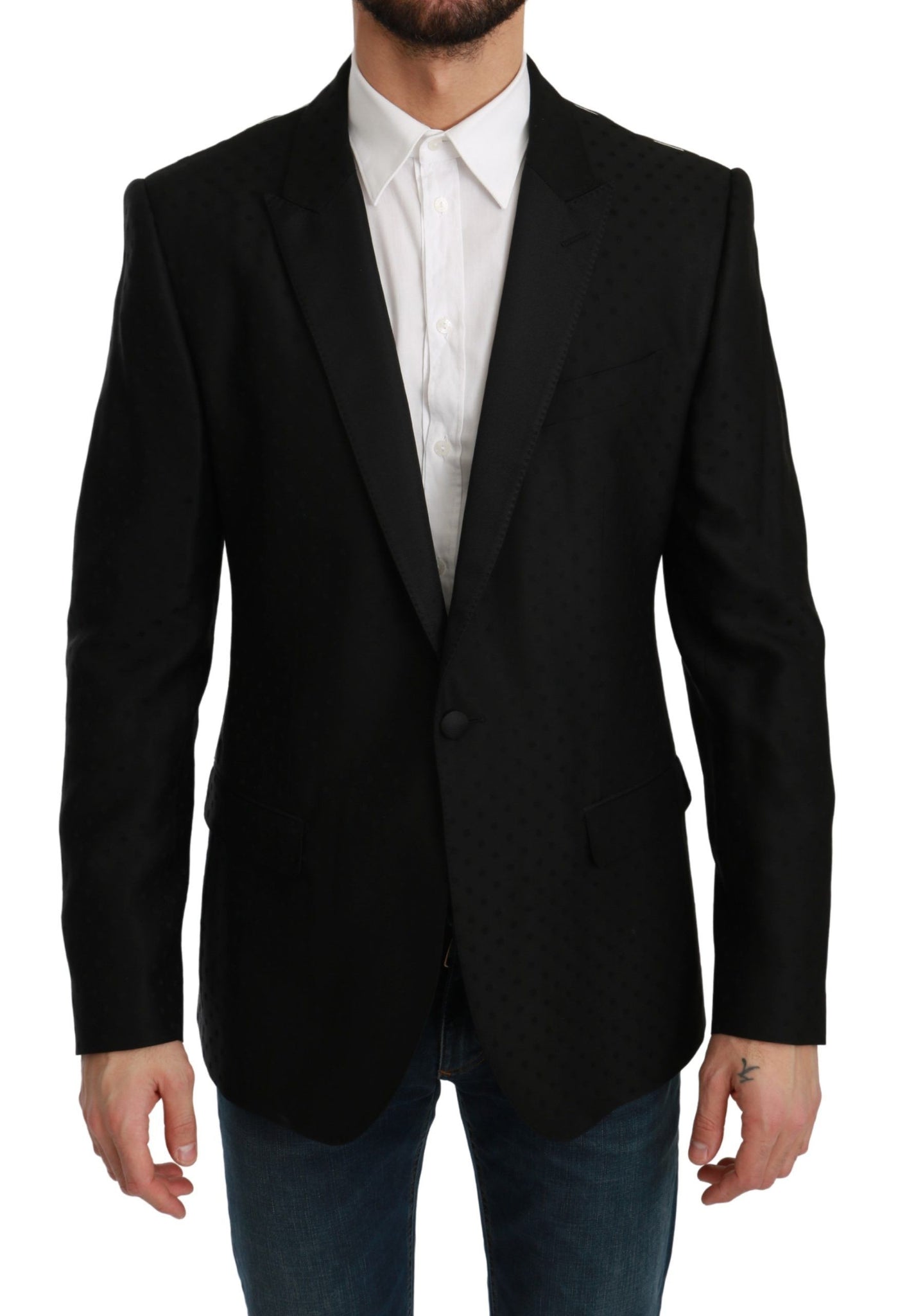 Step out in sophisticated style with this stunning Dolce & Gabbana Martini blazer. Perfectly tailored for the modern gentleman, it features a classic black polka dotted design that’s sure to turn heads. The luxurious blend of virgin wool and rayon provides both comfort and a sharp silhouette, seamlessly transitioning from office elegance to evening glam. With a touch of Italian craftsmanship, this blazer is a wardrobe essential for those who appreciate the finer things in life.