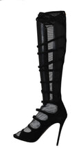 Step into luxury with these exquisite Dolce & Gabbana knee-high boots. These striking stilettos boast a sleek black suede and nylon material that offers both style and durability. With their iconic leopard-print leather soles, these boots are a bold statement of fashion and comfort. The convenient zipper opening at the back ensures a secure and stylish fit, making them perfect for any upscale occasion. Crafted with meticulous attention to detail in Italy, they represent the pinnacle of high-end footwear.