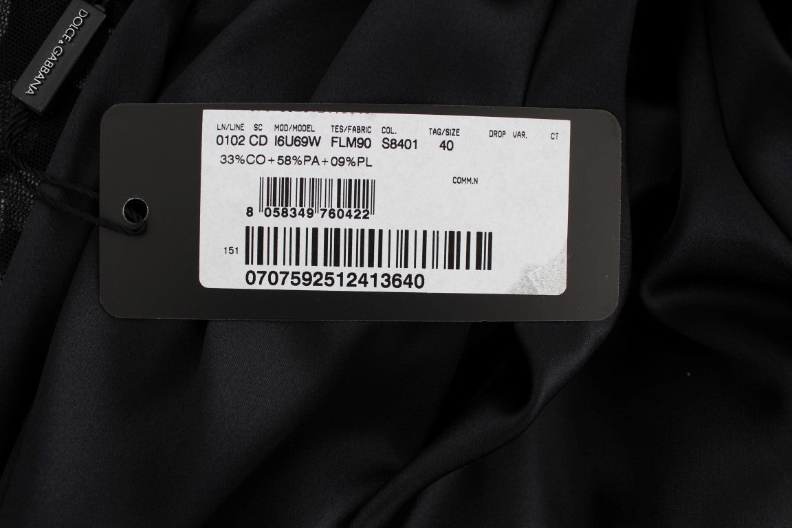 Indulge in the timeless elegance of Dolce & Gabbana with this stunning black and white polka dotted ruffled dress. Perfect for any upscale event, this piece is brand new with tags and exudes Italian craftsmanship. The above-the-knee shift model flatters the silhouette, while the ruffled detail adds a touch of romance. Finished with a discrete back zipper and the iconic logo detail – this dress is an exquisite choice for anyone with a love for luxury fashion.
