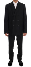 Discover sartorial elegance with this stunning Slim-Fit Three-Piece Suit from Dolce & Gabbana. Crafted from luxurious 100% wool, this double-breasted suit features a sleek blazer, a sophisticated vest, and stylish pants, all in a classic black hue. With a slim-fit design, two button-closure on the blazer, and meticulous Italian craftsmanship, this suit is as exclusive as it is timeless, perfect for making a statement at any high-end event or business gathering.