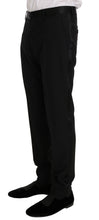Indulge in the epitome of sophistication with our Dolce & Gabbana Black Suit, a testament to impeccable Italian craftsmanship. This slim-fit three-piece suit is complete with a stunning blazer, a voguish vest, and sleek pants – each piece reflecting the brand’s renowned style and elegance. The suit boasts a unique, gold sequined Saxophone embroidery on the left chest, adding an exclusive touch of grandeur. Constructed from a premium blend of wool, silk, and polyester, this suit promises both luxury and comfort. With a sharp two-button blazer closure, an adjustable vest, and versatile pants, it caters to both formal and high-profile events.