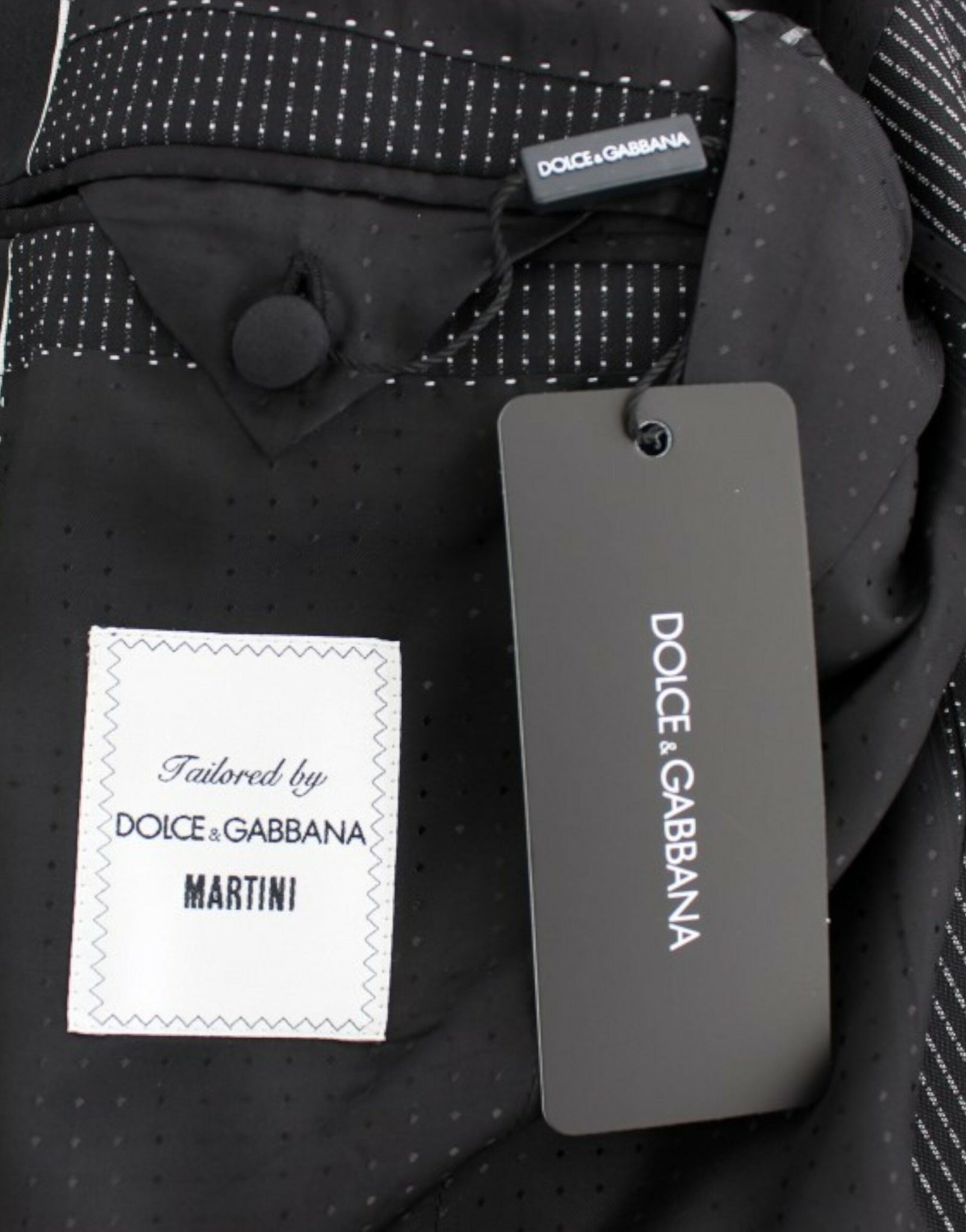 Indulge in the epitome of Italian luxury with the Dolce & Gabbana black polka-dotted MARTINI Blazer. A signature style from their exclusive MainLine collection, this single-breasted, one-button jacket conveys sophistication with a modern twist. Fashioned for a slim fit, this blazer ensures a sharp silhouette, perfect for the style-conscious gentleman. Crafted from a blend of premium materials, it offers both unparalleled comfort and durability.
