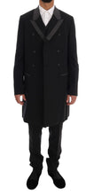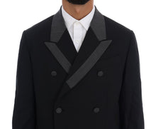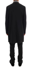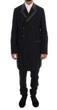Step into the world of high fashion with this stunning Dolce & Gabbana suit. Exemplifying Italian craftsmanship, this black suit with subtle gray detailing is tailored for a modern fit that guarantees a sharp silhouette. A double-breasted blazer, stylish vest, and sleek trousers compose this elegant three-piece set. The blazer features a two-button closure, two inside pockets, and a single vent in the back for a classic touch, while the vest boasts full button closure and an adjustable back strap for the perfect fit. Completing the ensemble, the trousers offer a comfortable 3-way zipper closure. This rare runway collection piece is more than just a suit; it’s a statement of sophistication and exclusivity.