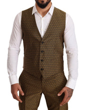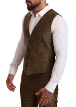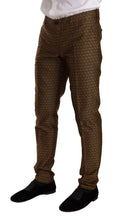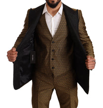 Indulge in the epitome of luxury and elegance with this exquisite three-piece suit by Dolce & Gabbana. The stunning brown suit boasts a harmonious blend of premium materials, featuring a sleek jacket with peak lapels, expertly tailored trousers, and a refined vest, all adorned in a captivating yellow and black pattern. With meticulous Italian craftsmanship, this slim-fit ensemble is ideal for the distinguished gentleman seeking to make a statement at any high-profile event.