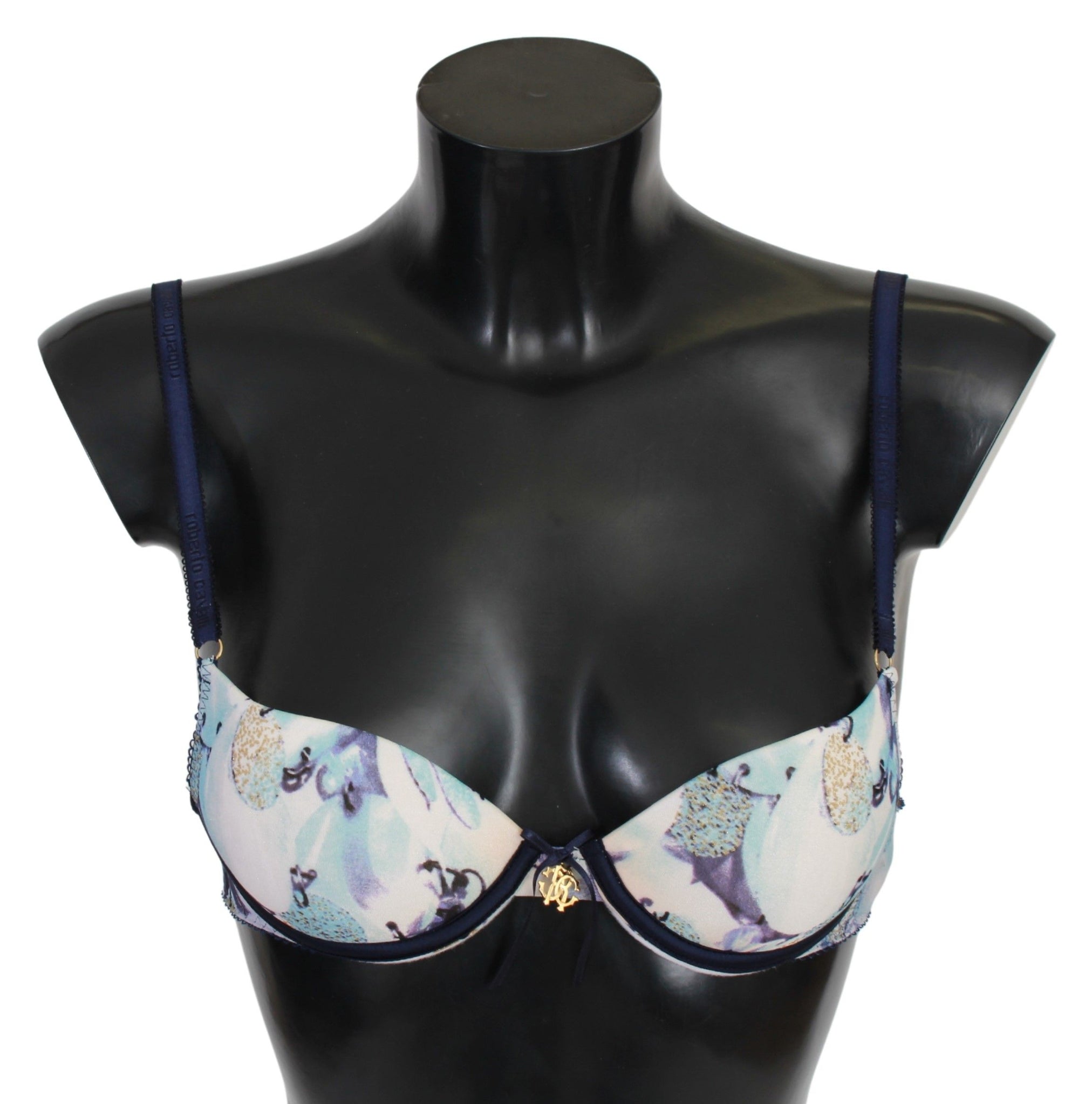 Indulge in the luxury of Roberto Cavalli with this stunning blue printed push-up bra. Crafted for those who seek sophistication and support, this piece infuses Italian allure into your intimate apparel. Adorned with signature logo details, it promises both style and quality in one beautiful design. Embrace comfort with the gentle embrace of premium materials and the convenience of a two-hook closure. Perfect for adding a daring yet elegant touch to your wardrobe essentials.