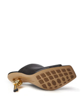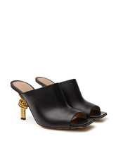Step into luxury with these stunning Bottega Veneta Mule Sandals. Boasting a sleek black color and crafted from supple 100% Nappa leather, these sandals epitomize elegance with their distinctive gold heel knot detail. Designed for both style and comfort, they feature rubberized soles for a secure grip. Made in Italy, they are a testament to exquisite craftsmanship and timeless style, perfect for elevating any ensemble.