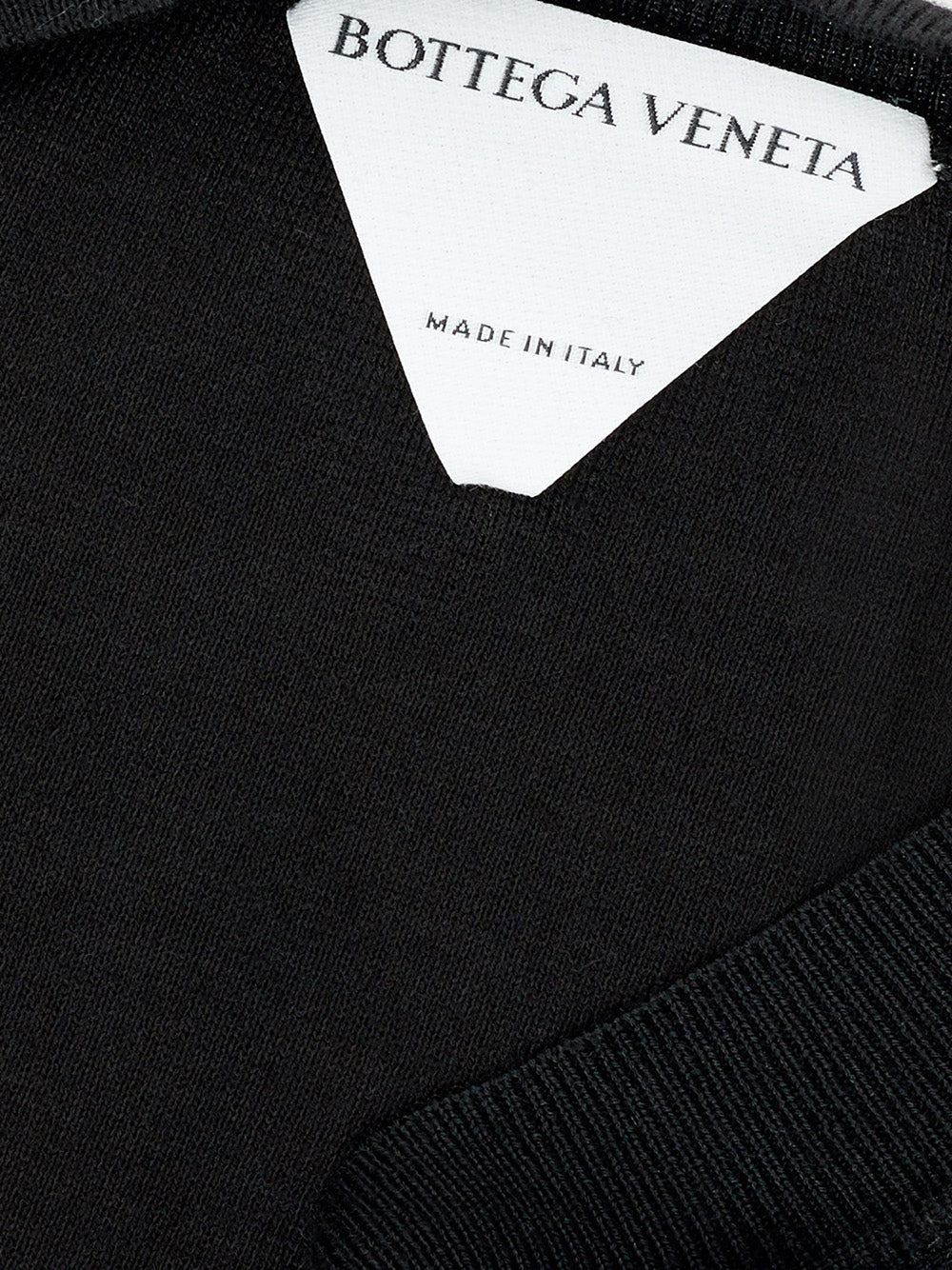Step into luxury with this sophisticated Bottega Veneta top, perfect for those who appreciate the finer details in fashion. The top features a beautiful cropped style, asymmetrical bottom, and exquisite knit details on the collar and sleeves. Crafted from a sumptuous blend of high-quality materials, it’s a stunning piece that marries comfort with high-end design.
