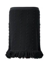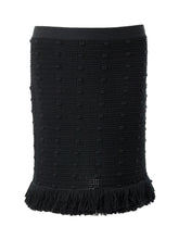 Step into timeless elegance with this gorgeous, brand new Bottega Veneta black skirt. Adorned with playful pompom details, this skirt is meticulously crafted in Italy from 100% cotton. It boasts a comfortable elastic waistband and chic fringes on the bottom, designed in a pencil style for a flattering, regular fit. Perfect for elevating your mid-length skirt collection!