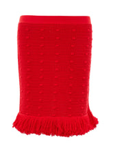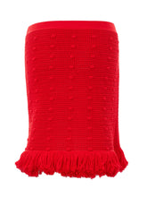Step into the spotlight with this stunning Red Pencil Skirt from Bottega Veneta. Perfect for any fashion-forward wardrobe, this skirt features playful Pompom details, a comfortable elastic waistband, and chic fringes on the bottom. Crafted from luxurious 100% cotton and made in Italy, it’s a vibrant choice for both daytime sophistication and evening elegance.