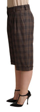 Indulge in the epitome of Italian craftsmanship with these exquisite Checkered Wool Bermuda Shorts. Exclusively designed by the renowned fashion house, Dolce & Gabbana, these shorts are a testament to high-end style and luxury. With their timeless brown check pattern, they offer versatility and elegance for any upscale occasion. The shorts feature a sleek button and zipper closure complemented by two practical front pockets and delicate logo details, ensuring you dress not just in comfort but with class direct from Dolce & Gabbana’s MainLine Collection. Made in Italy, these Bermuda shorts are crafted from a superior blend of 98% Virgin Wool and 2% Elastane, assuring both durability and a hint of stretch for the perfect fit.