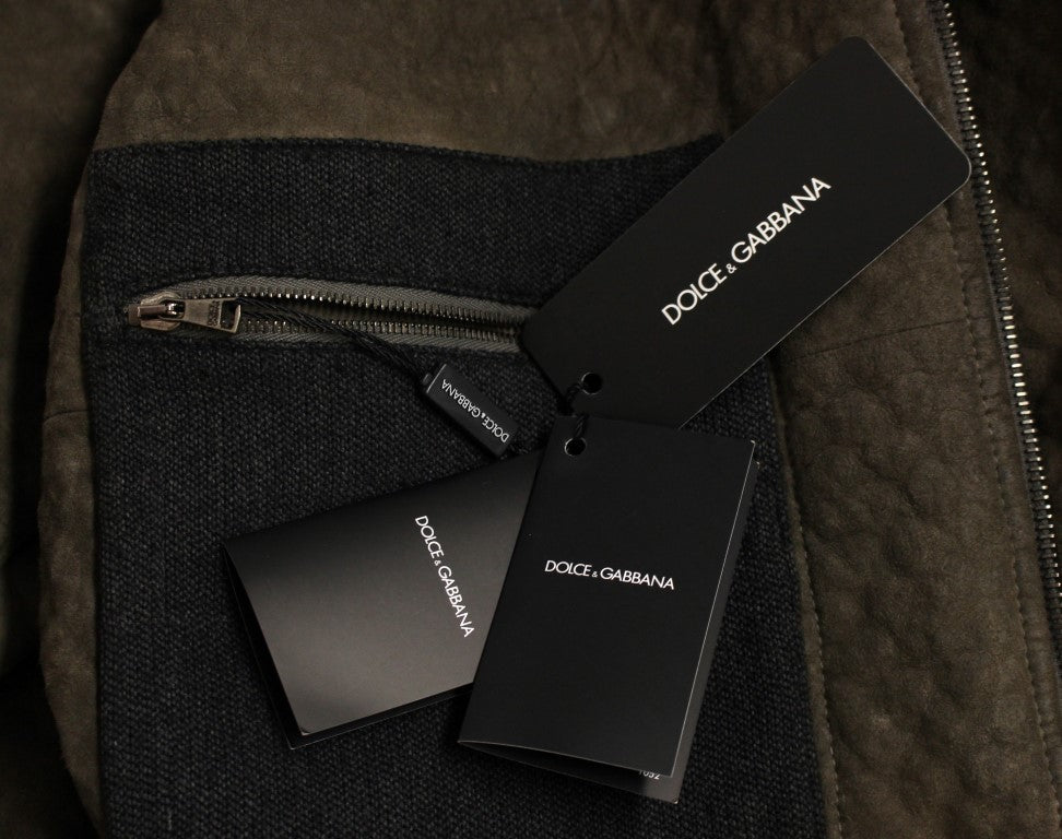 Experience unparalleled elegance with Dolce & Gabbana’s men’s leather jacket, a blend of luxury and comfort. This brown and gray jacket is not just a piece of clothing but a statement of exquisite taste, crafted with attention to detail from the prestigious MainLine collection. With its oversize fitting, it offers great comfort while maintaining a sleek silhouette. The full zipper closure, coupled with front side pockets and unique logo engraved metal detailing, enhances its luxury appeal. Designed and made in Italy, this jacket exudes style and sophistication for the fashion-conscious individual.