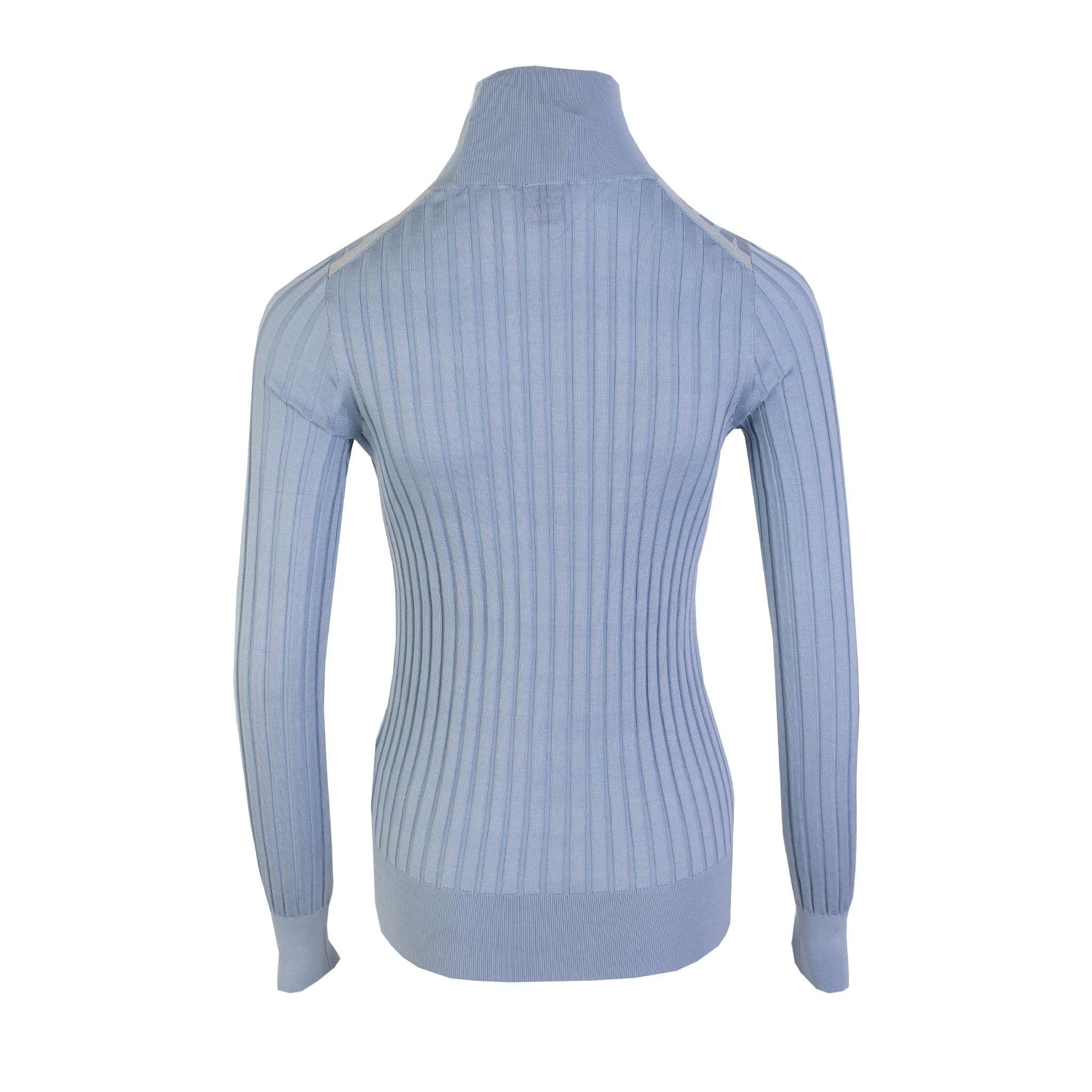 Indulge in the luxury of a 100% Authentic Burberry turtleneck sweater. Finely crafted from pure silk, this elegant light blue piece offers a slim fit and a soft touch, perfect for those seeking both style and comfort. Made with pride in Italy, it’s a pristine addition to your wardrobe.