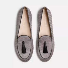 Experience the epitome of Italian craftsmanship with these Charles Philip Erben loafers. Fashioned in sumptuous silk fabric with a sophisticated gray and black palette, these shoes are the embodiment of luxury. A meticulously hand-sewn black tassel adds a timeless charm, while the moccasin effect stitching on the toe exudes refined elegance. A modest 10mm heel, rubber sole, and a leather lining ensure you stride with comfort. Footbed cushioning crafted from cotton maximizes comfort, making these loafers perfect for stylish individuals who value both design and comfort. Handmade in Italy, these loafers are as unique as they are unisex, ready to complete your luxe wardrobe.