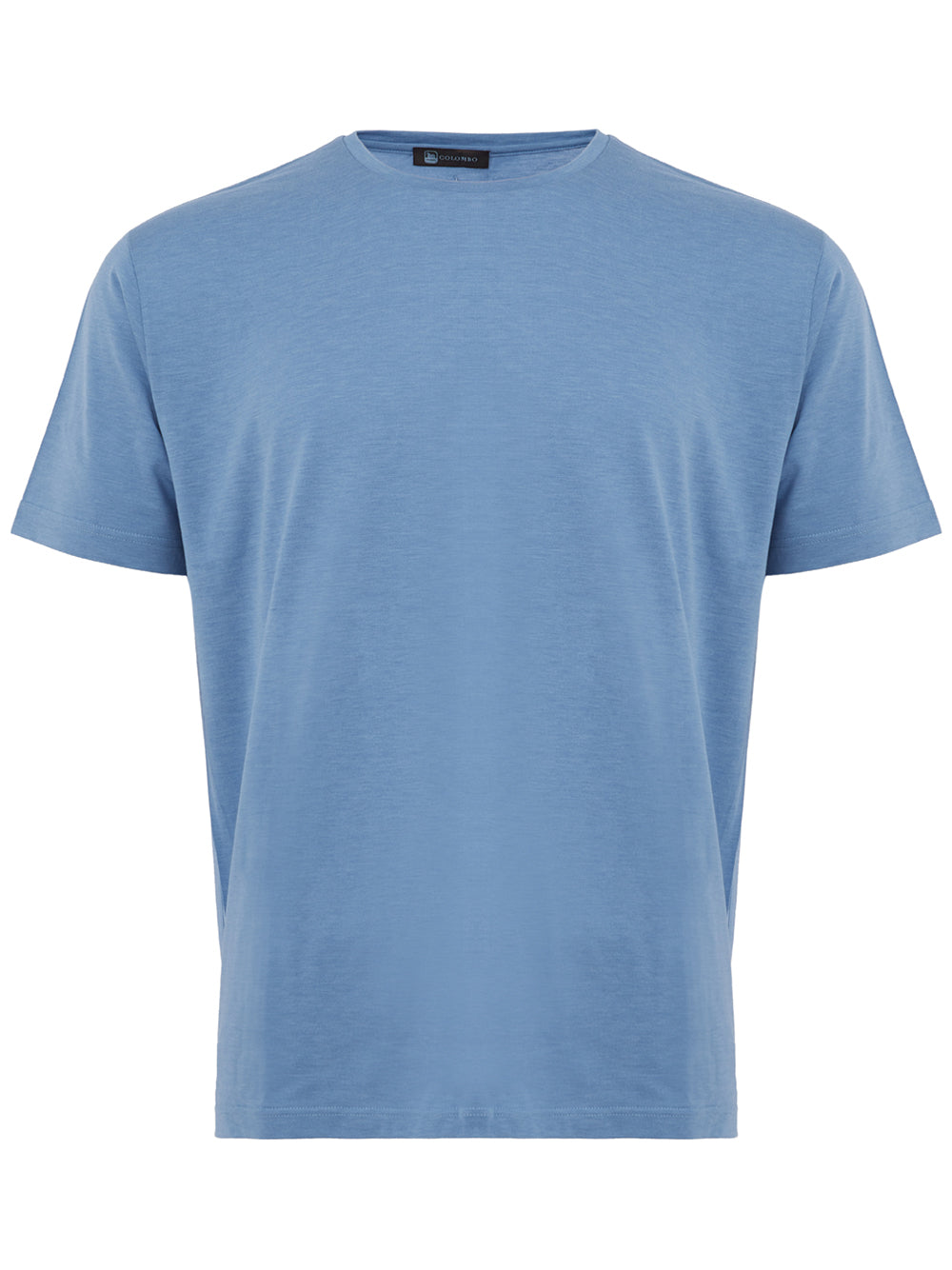 Discover the epitome of luxury with this outstanding Light Blue T-Shirt crafted by the renowned house of Colombo. Impeccably designed with a blend of sumptuous silk and cotton, it promises not only an opulent touch but also unmatched comfort. Featuring a regular fit that suits any occasion, it’s detailed with a discreet ton-sur-ton embroidered logo on the back, lending an air of sophistication to your ensemble.
