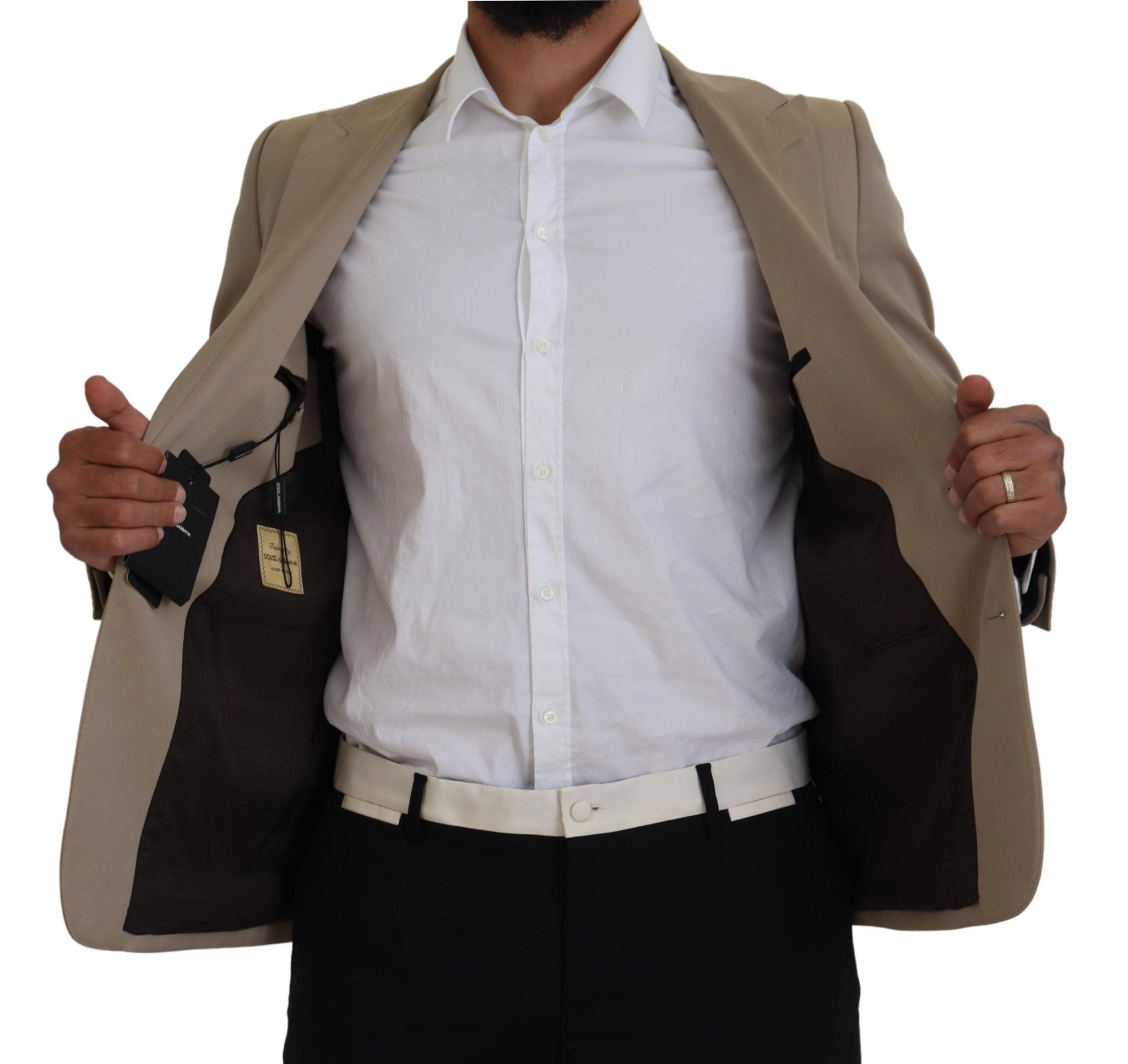Step into refined elegance with this stunning Beige Single Breasted Blazer from the renowned Dolce & Gabbana collection. Exuding sophistication, this blazer is the epitome of luxury tailoring, perfect for making a statement at any high-end event or business meeting. With its sleek design and premium fabric blend, it offers both style and comfort.