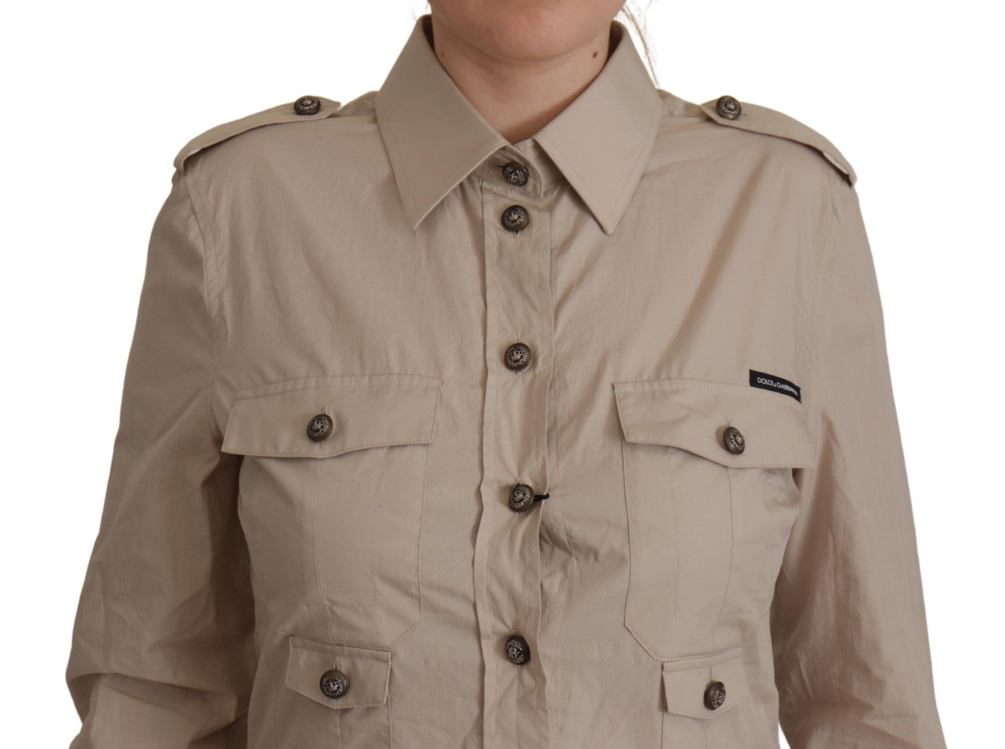 Indulge in the epitome of sophistication with our Gorgeous, brand new with tags, 100% Authentic Dolce & Gabbana shirt. This piece is a testament to classic style, boasting front pockets and long sleeves, finished in a sublime beige hue. Made in Italy, this shirt exemplifies craftsmanship and luxury in every thread.