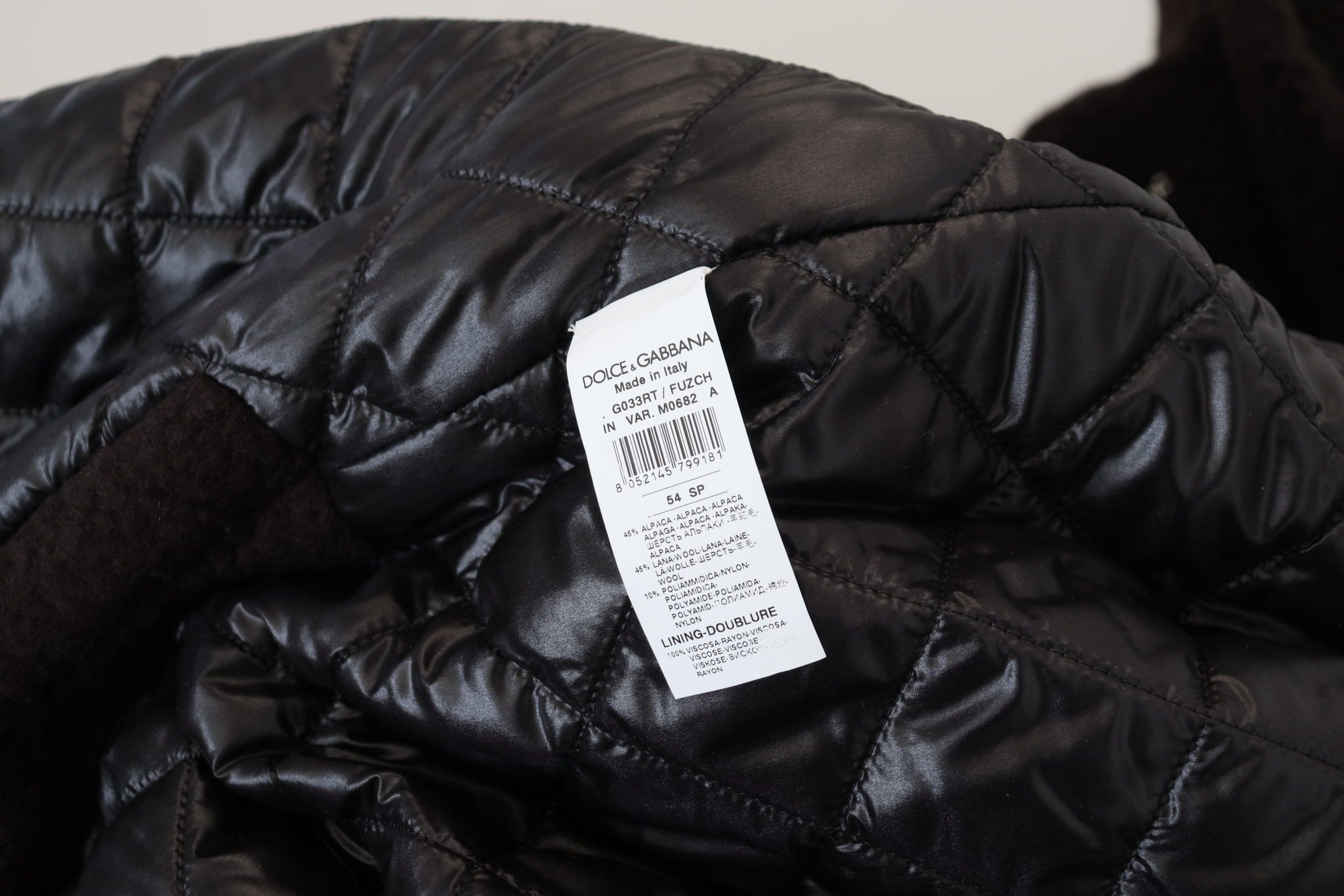 An embodiment of sophistication and luxury, this Dolce & Gabbana coat is a must-have for the fashion-savvy individual. Crafted in Italy, the jacket boasts a sleek black color and a smart button-down closure, making it perfect for both formal and casual occasions. The blend of alpaca and wool offers unmatched warmth and comfort. Exuding elegance with discreet logo details, this piece is a timeless addition to any wardrobe.
