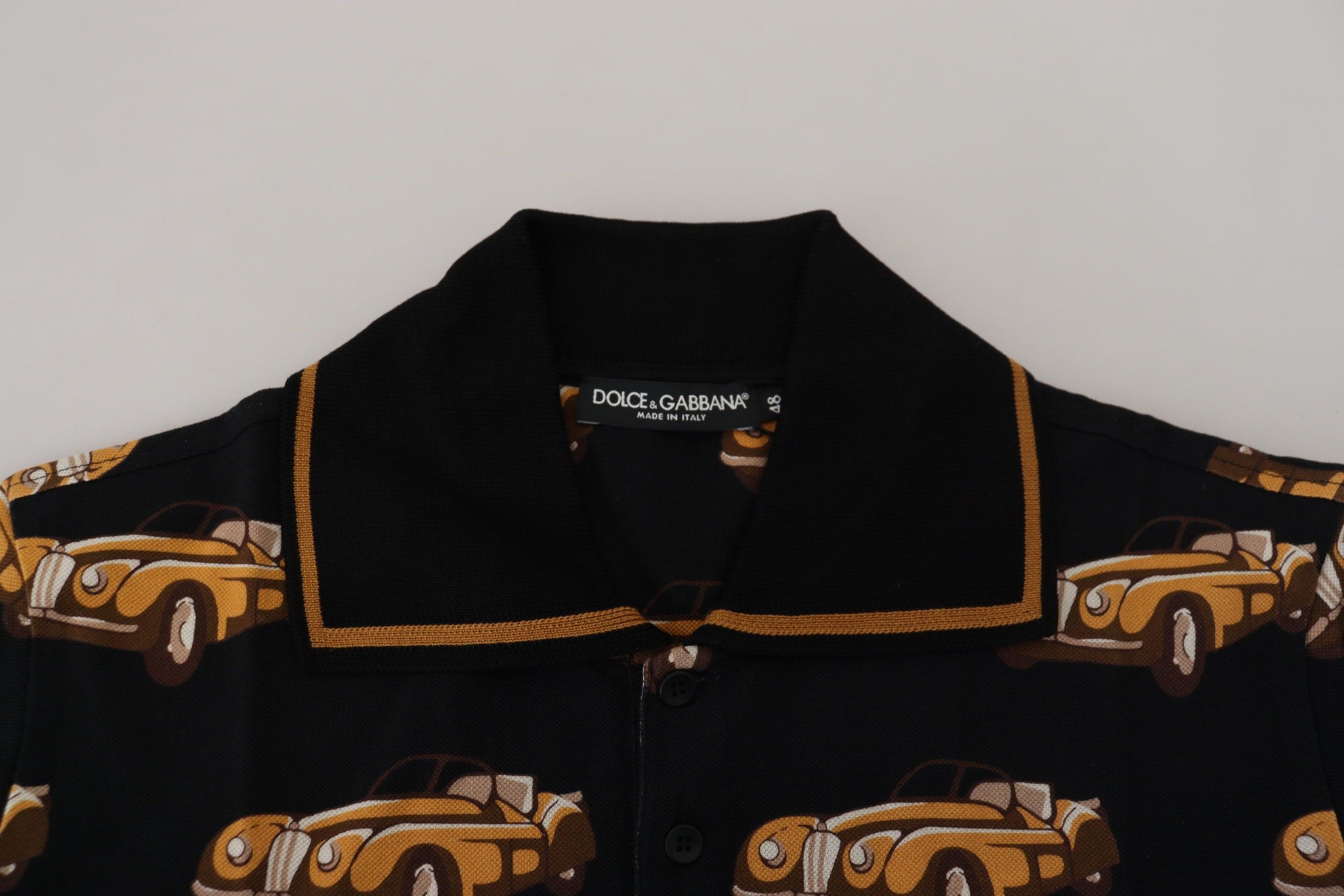 Indulge in the epitome of Italian luxury with this stunning, new with tags T-shirt from Dolce & Gabbana. This black polo t-shirt, adorned with a unique car print, provides a sartorial twist to any outfit. Crafted from 100% premium cotton, it ensures comfort with a touch of sophistication, making it a perfect choice for any fashion-forward wardrobe. The regular fit and subtle logo details add to the charm of this Made in Italy piece.