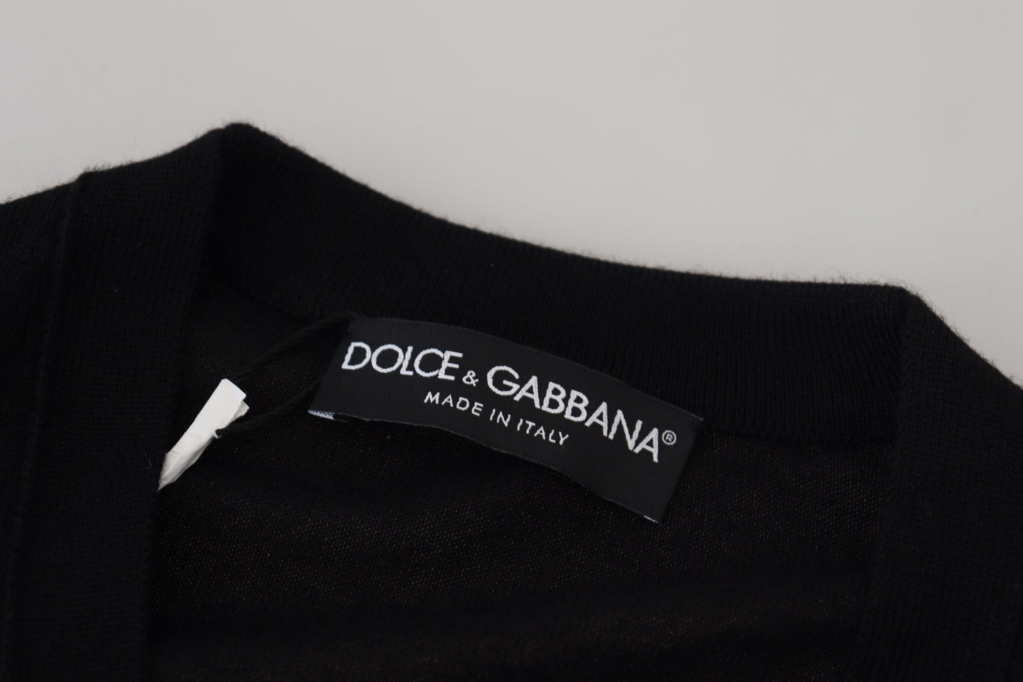 Indulge in the luxury and comfort of this sophisticated Dolce & Gabbana cardigan sweater. Made from the finest 100% cashmere, this stunning piece features a classic full button closure, ensuring both warmth and style. Its elegant black hue makes it a versatile addition to any wardrobe, exuding timeless appeal. Proudly crafted in Italy, this cardigan is a true testament to superior craftsmanship and fashion-forward design.