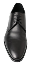 Step into elegance with these immaculate Derby shoes, a testament to the luxurious craftsmanship synonymous with Dolce & Gabbana. Tailored from 100% premium leather, these shoes boast not just timeless style but ultimate comfort and durability. Their sleek black color makes them a versatile addition to any formal attire, ensuring a sophisticated touch to your ensemble. Proudly made in Italy, these shoes are detailed with the subtle yet recognizable logo, attesting to their authenticity and high-end origin.
