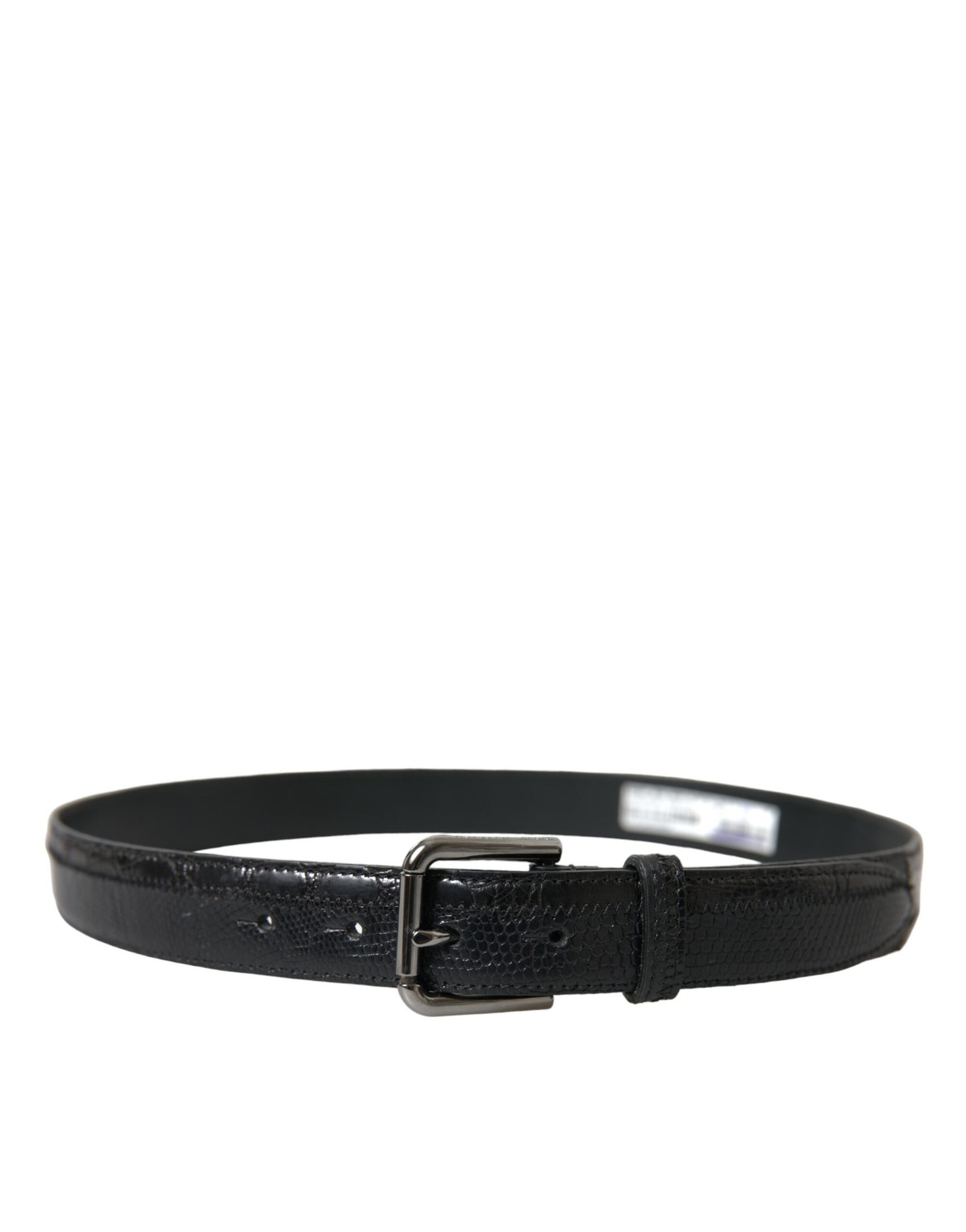 Dolce & Gabbana Black Exotic Leather Silver Metal Buckle Belt