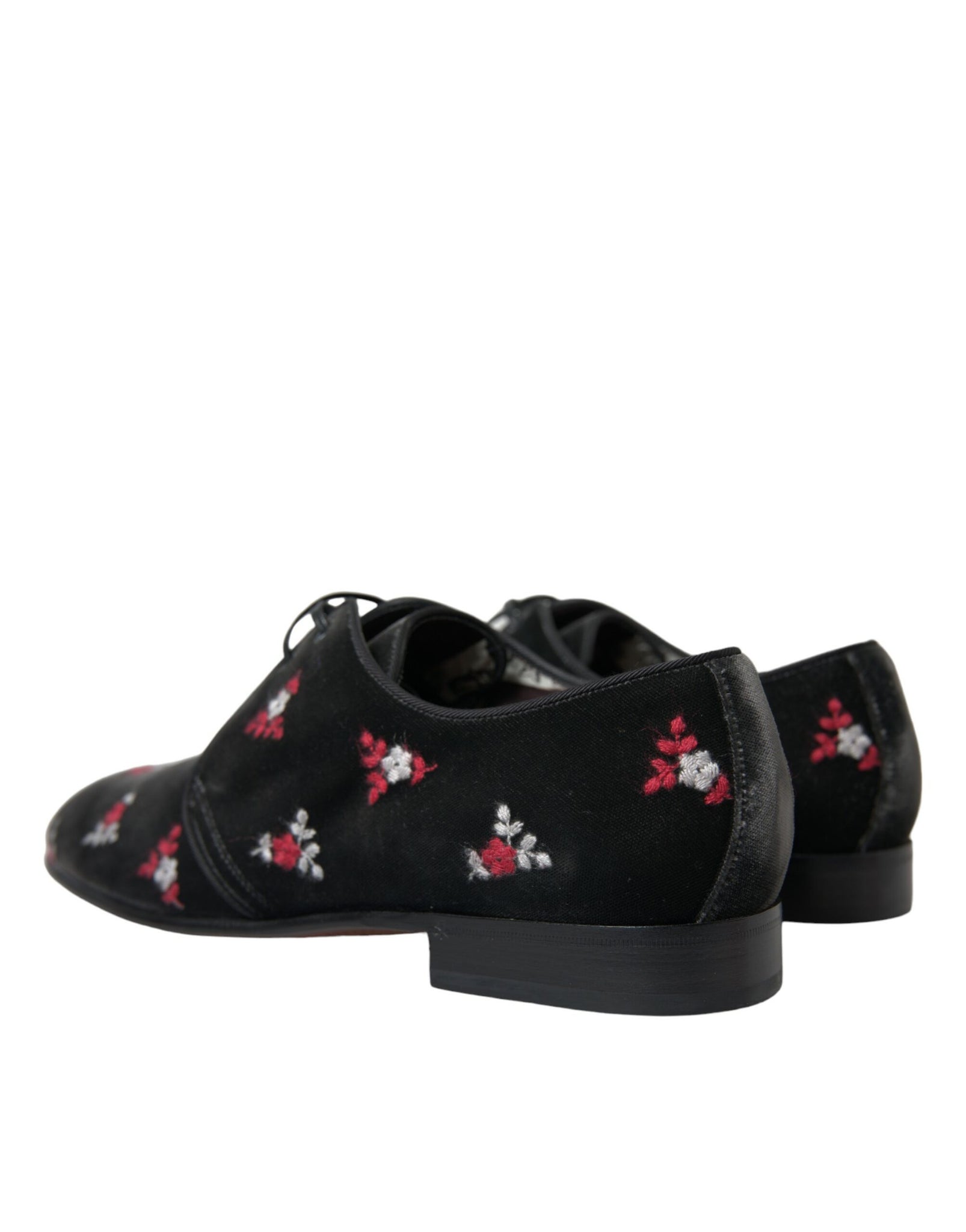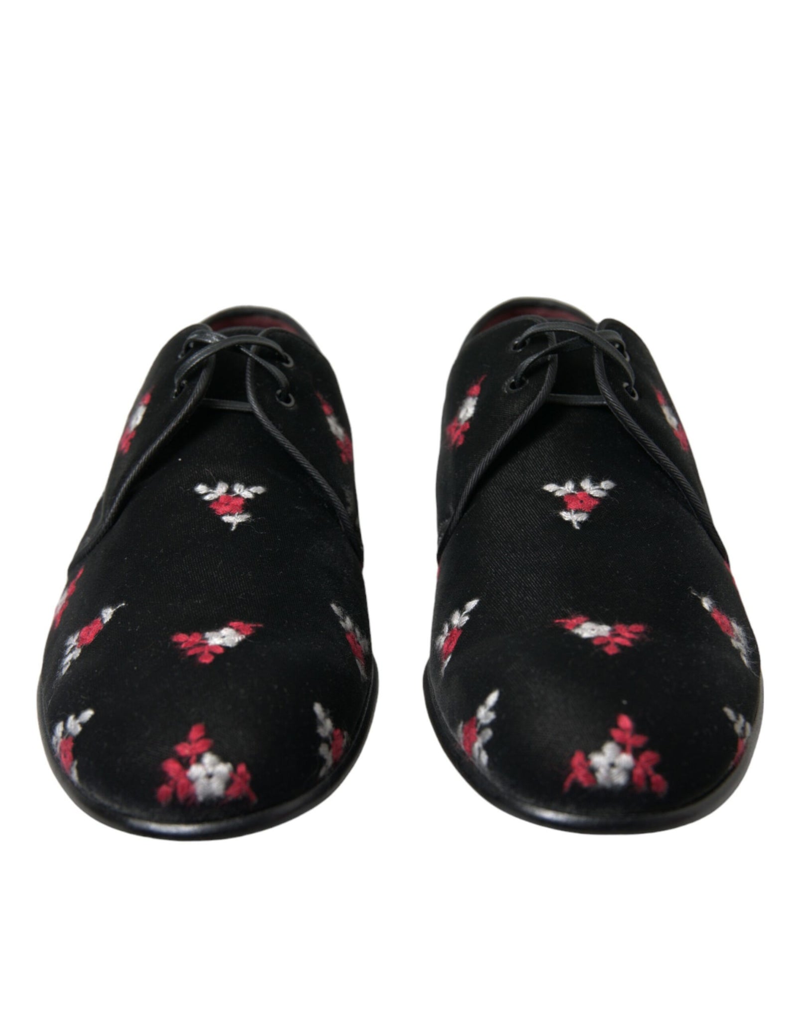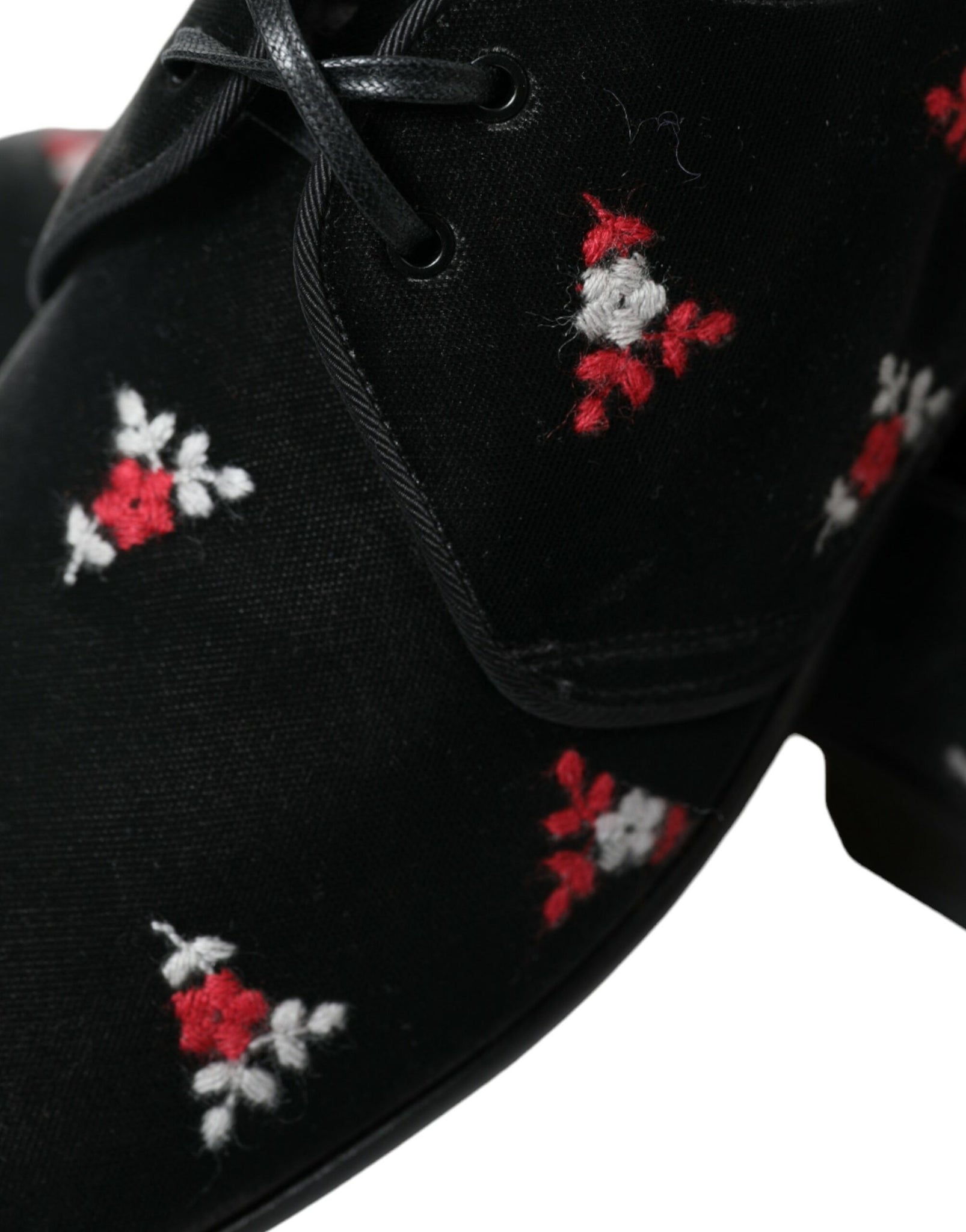 Gorgeous brand new with tags, 100% Authentic Dolce & Gabbana black velvet with floral embroidered dress formal laceup shoes.
