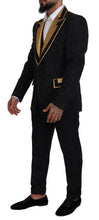 Indulge in the epitome of luxury with this gorgeously crafted Dolce & Gabbana 3 piece suit. Perfect for those seeking to exude elegance and sophistication, this suit comes complete with a blazer, tailored pants, and a classic vest. Designed in Italy, the ensemble showcases a stunning black and gold color palette, with meticulous attention to detail and high craftsmanship.
