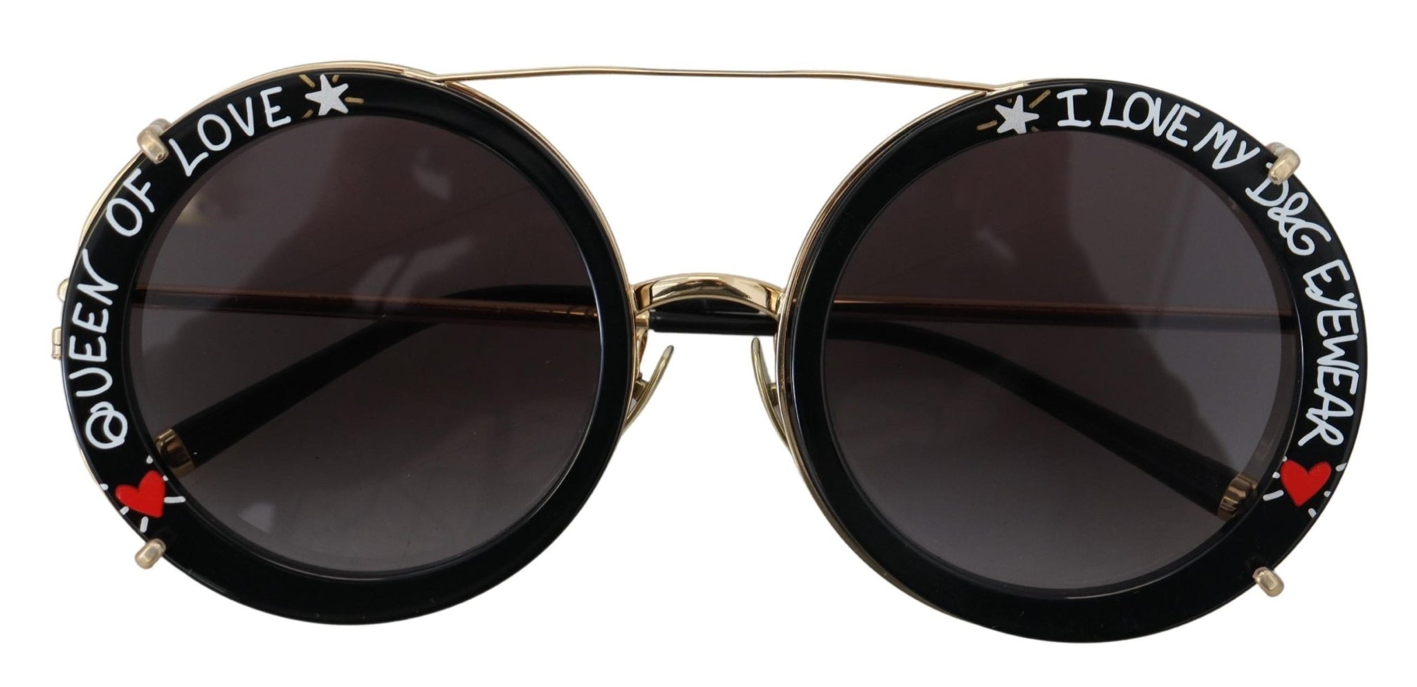 Indulge in the epitome of luxury with these gorgeous Authentic Dolce & Gabbana sunglasses. Designed with a sleek black and gold metal frame that radiates elegance, these sunglasses are not only a style statement but a promise of 100% UVA/B protection with their gray gradient lenses. Perfect for adding a touch of sophistication to any look while safeguarding your eyes, they come with an extra logo printed black plastic cover for added glamour. Made in Italy, these sunglasses are a true representation of fashion-forward design and quality craftsmanship.